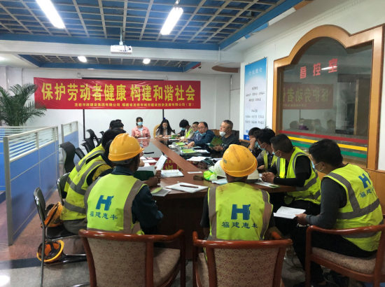 2020425日至51日是全國第18個《職業(yè)病防治法》宣傳周。為深入宣傳貫徹《職業(yè)病防治法》,進(jìn)一步普及職業(yè)病防治知識,提高一線工人自我防護(hù)意識和能力,切實保護(hù)一線工人的職業(yè)健康權(quán)益。根據(jù)市國資委和城發(fā)集團(tuán)相關(guān)工作部署,428日上午,公司分管安全副總經(jīng)理修海金及質(zhì)安部人員深入在建項目開展職業(yè)病宣傳活動。